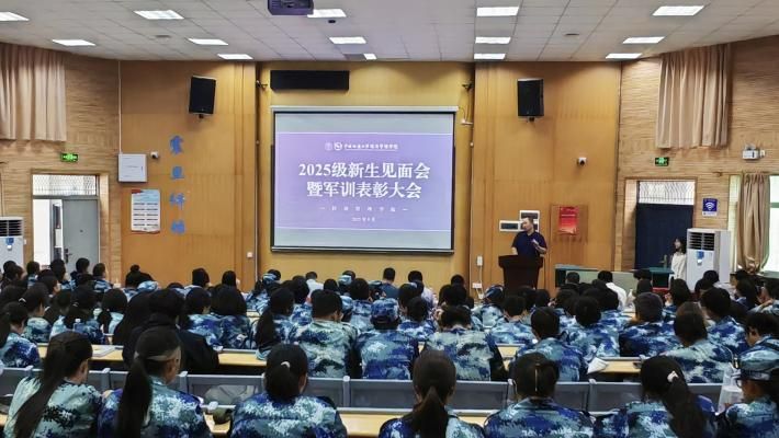 9月21日,学院2025级本科新生开学典礼暨军训表彰大会在南望山校区教三楼109隆重举行。学院党委书记杨昌锐,院长於世为,党委副书记李纪亮,副院长肖建忠、王广民,新生班主任代表龚承柱、朱永光、李琳、谭彩霞、王萍、杨贺盈、郭聖煜、薛武强、王菁,团委副书记张弛,新生辅导员彭少琪以及全体2025级本科生参加开学典礼暨军训表彰大会。典礼及表彰大会由学院党委副书记李纪亮主持。