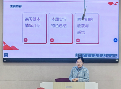活动伊始,胡怀敏老师首先介绍了今年教学实习的成效与亮点。她通过详实的数据和案例,系统展示了金贸系今年实习基本情况与学生在实习实践中的成长收获,并重点分享了此次教学实习的改革特色。